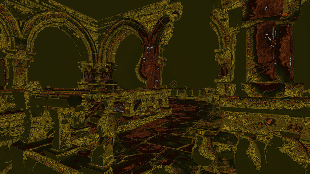 This gradient map post process shader has been created in Unreal Engine. The shader is interactive through exposed material parameters, which allow the developer to modify various properties.