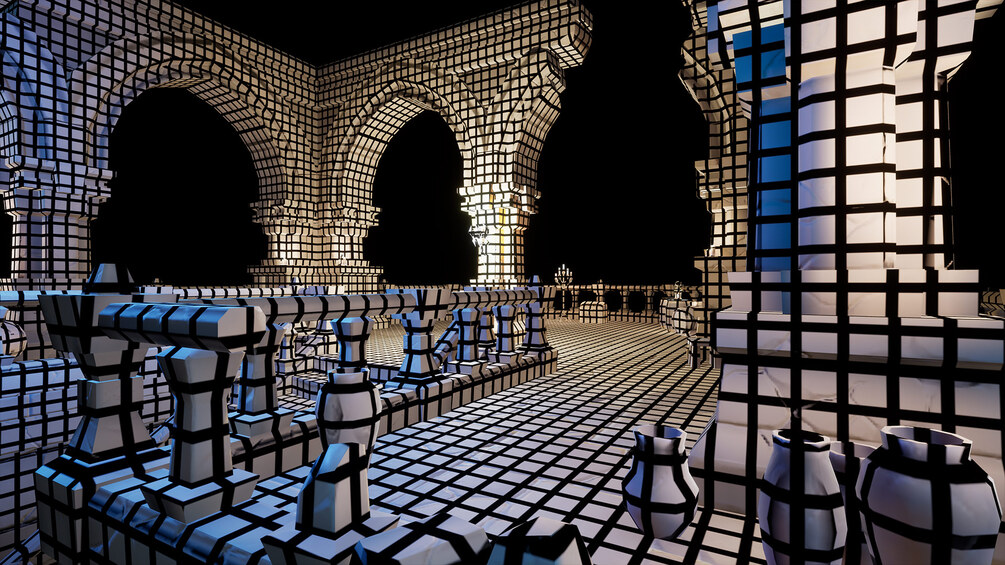 This texture projection post process shader has been created in Unreal Engine. The shader is interactive through exposed material parameters, which allow the developer to modify various properties.